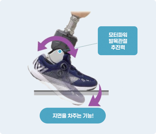 RoFT는 전자제어식 통합 센서 시스템을 기반으로 발목 관절의 움직임을 재현합니다. 발목 구동 모터가 지면을 밀어주는 추진력을 제공하며 독자적인 특허기술인 탄성체를 추가하여 충격 흡수 및 에너지 복원력을 향상시켰습니다.